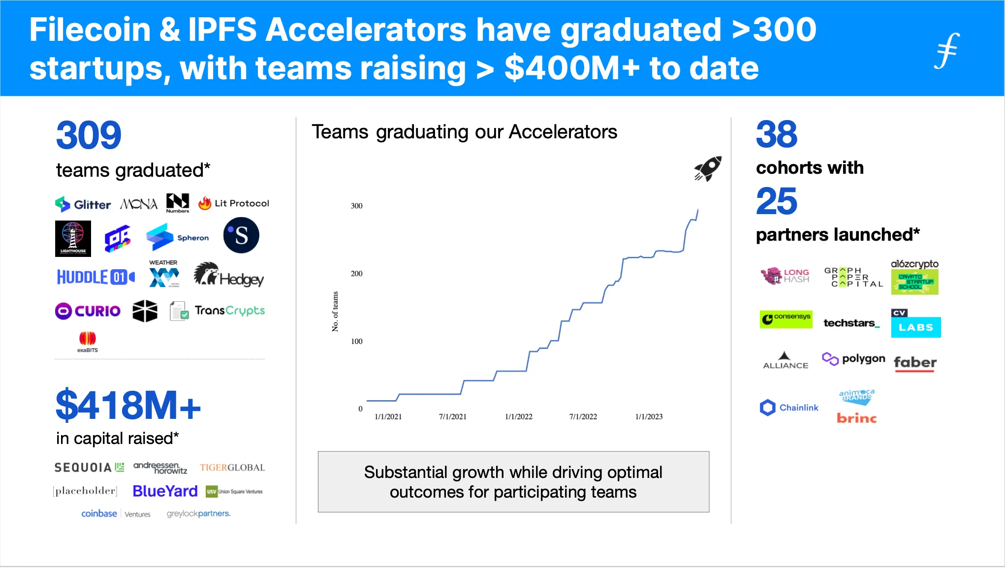 - Accelerator teams raising >$420M in venture capital