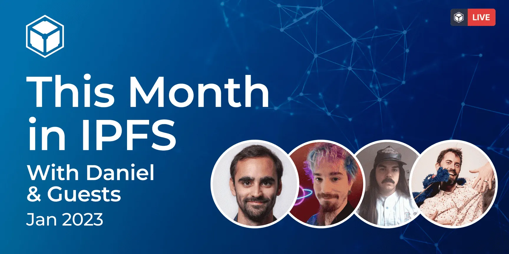 Tune into the first episode of This Month in IPFS! Streamed on YouTube and Twitter, this series will cover a wide range of topics related to IPFS, including live coding sessions, guest interviews with IPFS contributors and developers, and updates on the latest developments in the IPFS community and working groups. Learn more and register to attend!
