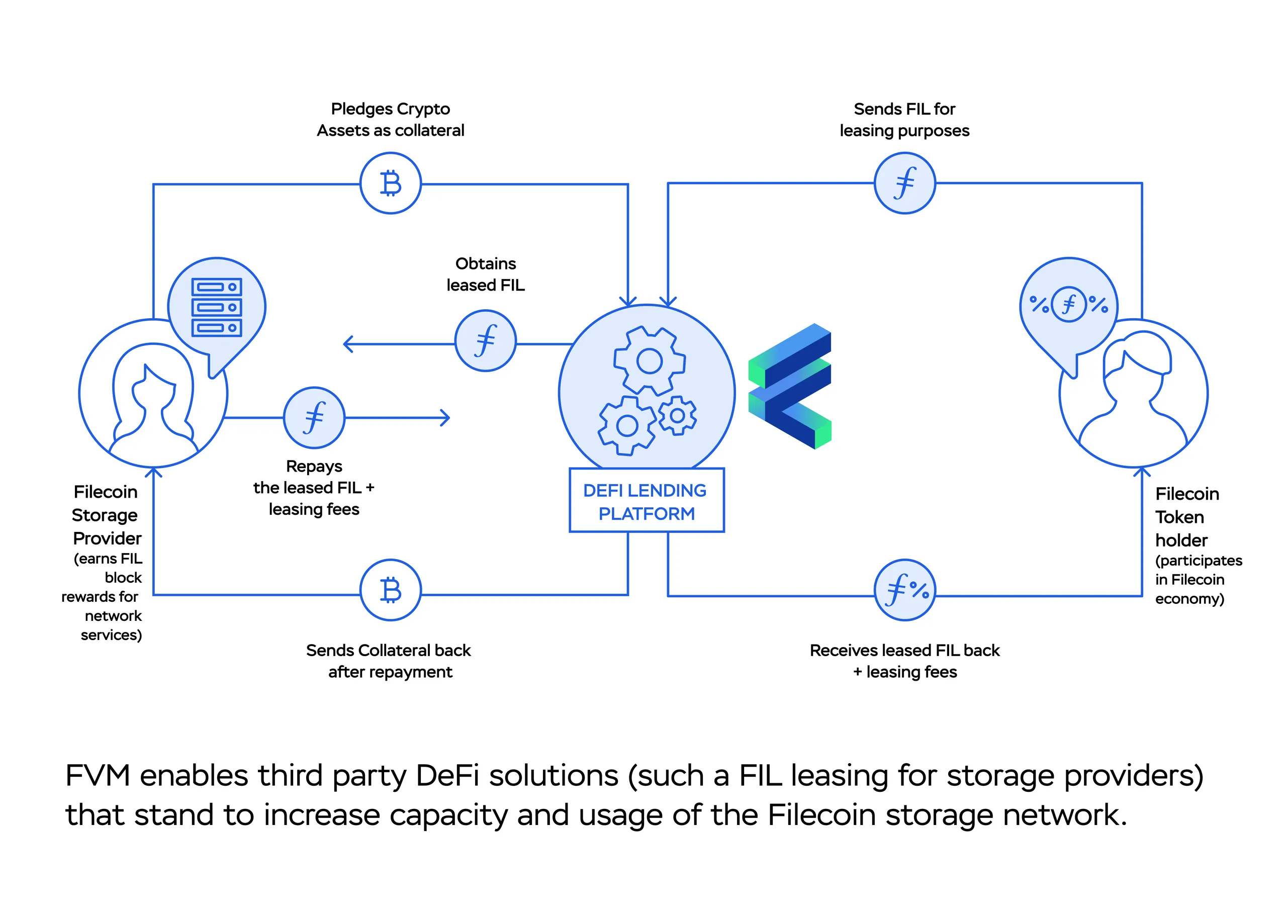 FVM allows developers to build new solutions to help Storage Providers access FIL for collateral. Specifically, FIL token holders will soon be able to contribute their own FIL to grow Storage Provider operations via smart-contract based protocols. These third party protocols will have their own sets of criteria for selecting Storage Providers to lease FIL to, and take different approaches to lease terms and requirements. The ability to more efficiently connect Filecoin token holders with Storage Providers could accelerate the network’s data growth, and enable new Storage Providers to bring their services online more efficiently.
