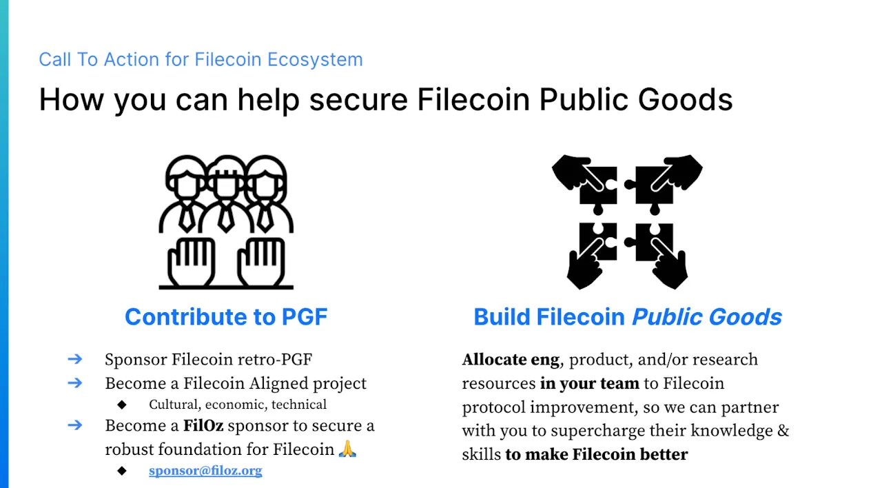 - Sponsor Filecoin retro-PGF: Provide financial support for retroactive public goods funding in the Filecoin ecosystem.