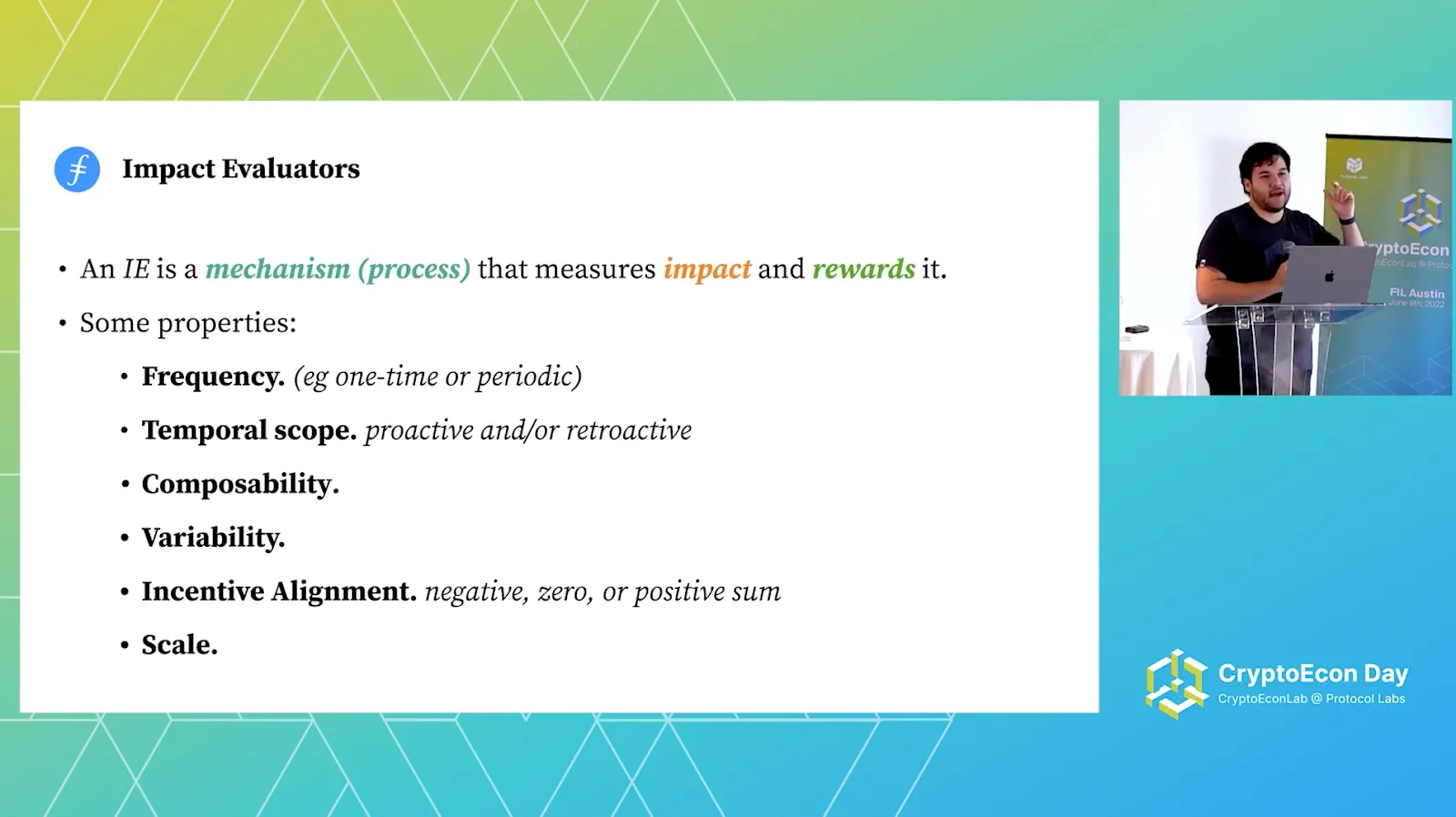 Impact Evaluators are a class of funding mechanisms that are growing in priority for Protocol Labs, and they can be understood as systems or mechanisms for retrospectively measuring, evaluating, and rewarding valuable work towards specific objectives (learn more on YouTube). This provides a system to reward and acknowledge the high uncertainty, high upside projects that may or may not be captured by other mechanisms (e.g. prospective grants).