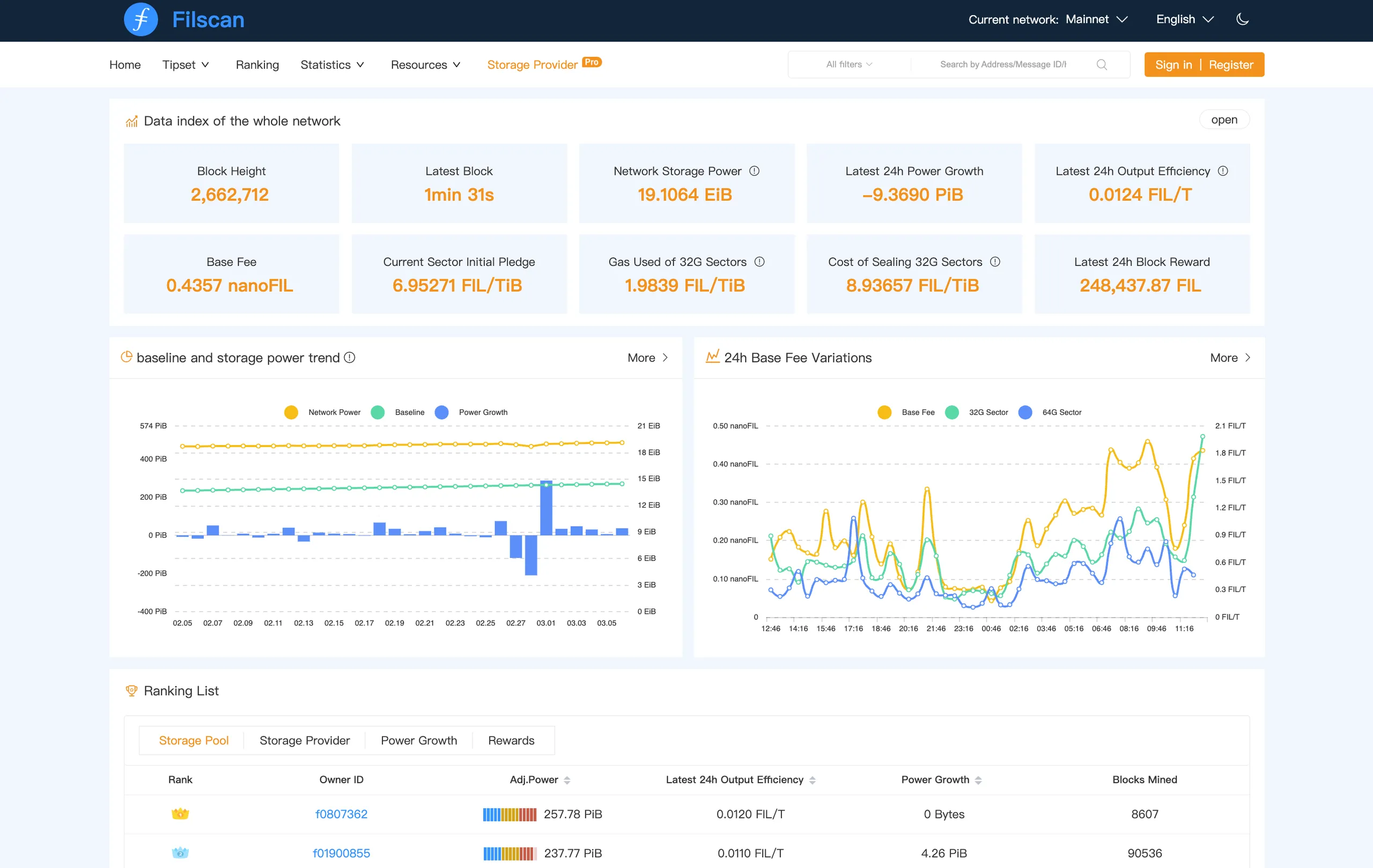 Filscan is an existing Filecoin explorer that has worked on providing data and statistics to the network for years. Participants in the Filecoin network — from clients, to Storage Providers, to developers — have been using the explorer to find information about messages, blocks, and storage deals.